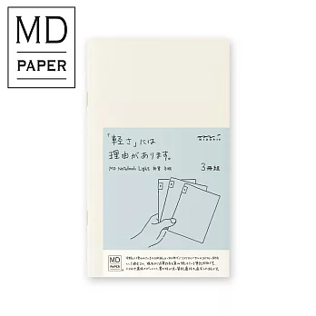 像拆書一般,將「MD筆記本」拆裝成3本了!「MD NOTEBOOK 輕量版」是3冊組筆記本,每一本48頁,